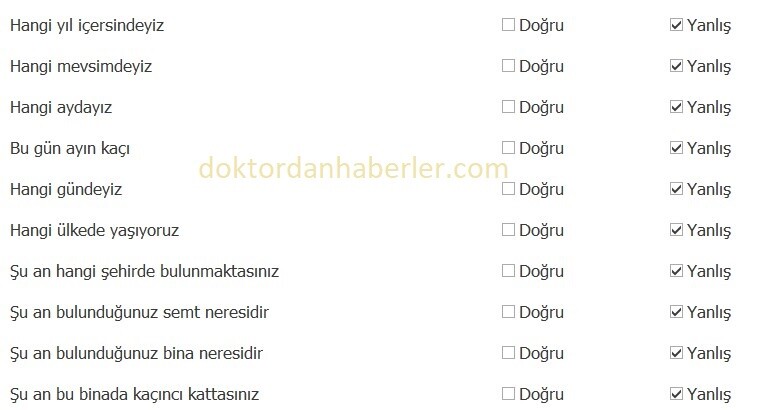 Aile hekiminize başvurunuzun ardından genellikle Folstein Mental Test soruları çerçevesinde hastaya bir takım sorular sorulur. Bu sorularla hastanın yönelimi, kayıt hafızası, dikkati, hesap yapması, hatırlaması ve lisan durumu sorgulanmaya çalışılır.