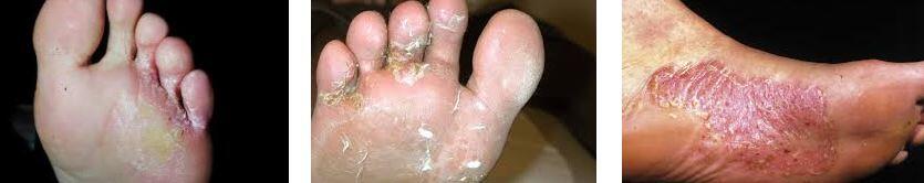 - Ayak aralarında çatlak görünüm ve soyulmuş deri